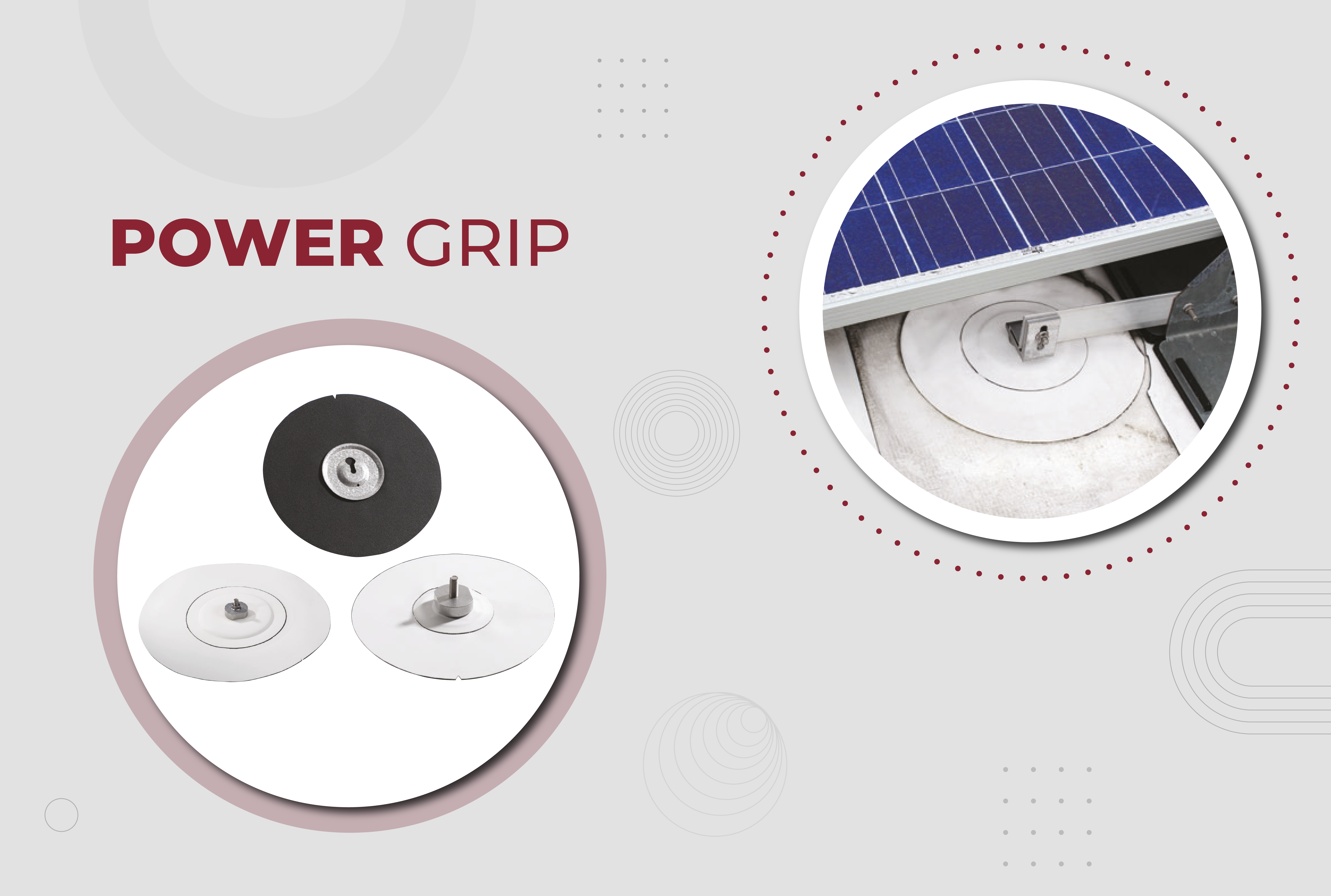 En el caso específico de las cubiertas tipo Deck, además del anclaje por peso, existe una solución llamada Power Grip. Esta consiste en un componente de succión, es electrosoldado al material de TPO, del cual sale un tornillo de donde se anclará la estructura que sujetará al panel solar Como en todos los casos, es importante el correcto mantenimiento del sistema, para asegurar que todos los componentes estén en óptimo funcionamiento