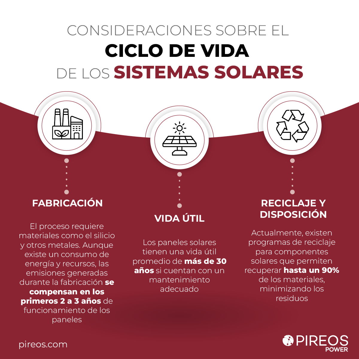 Aunque los beneficios son claros, es importante entender que los sistemas solares también tienen un ciclo de vida que involucra procesos de fabricación, instalación y eventual disposición final. Sin embargo, el impacto negativo es mínimo comparado con las energías tradicionales: